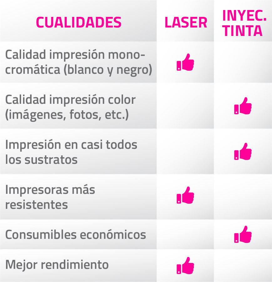 Imprimes mas de dos o tres veces a la semana puedes usar una de inyección de tinta o laser, sin embargo, si tu frecuencia de impresión es por mas de una semana la recomendación es una laser.